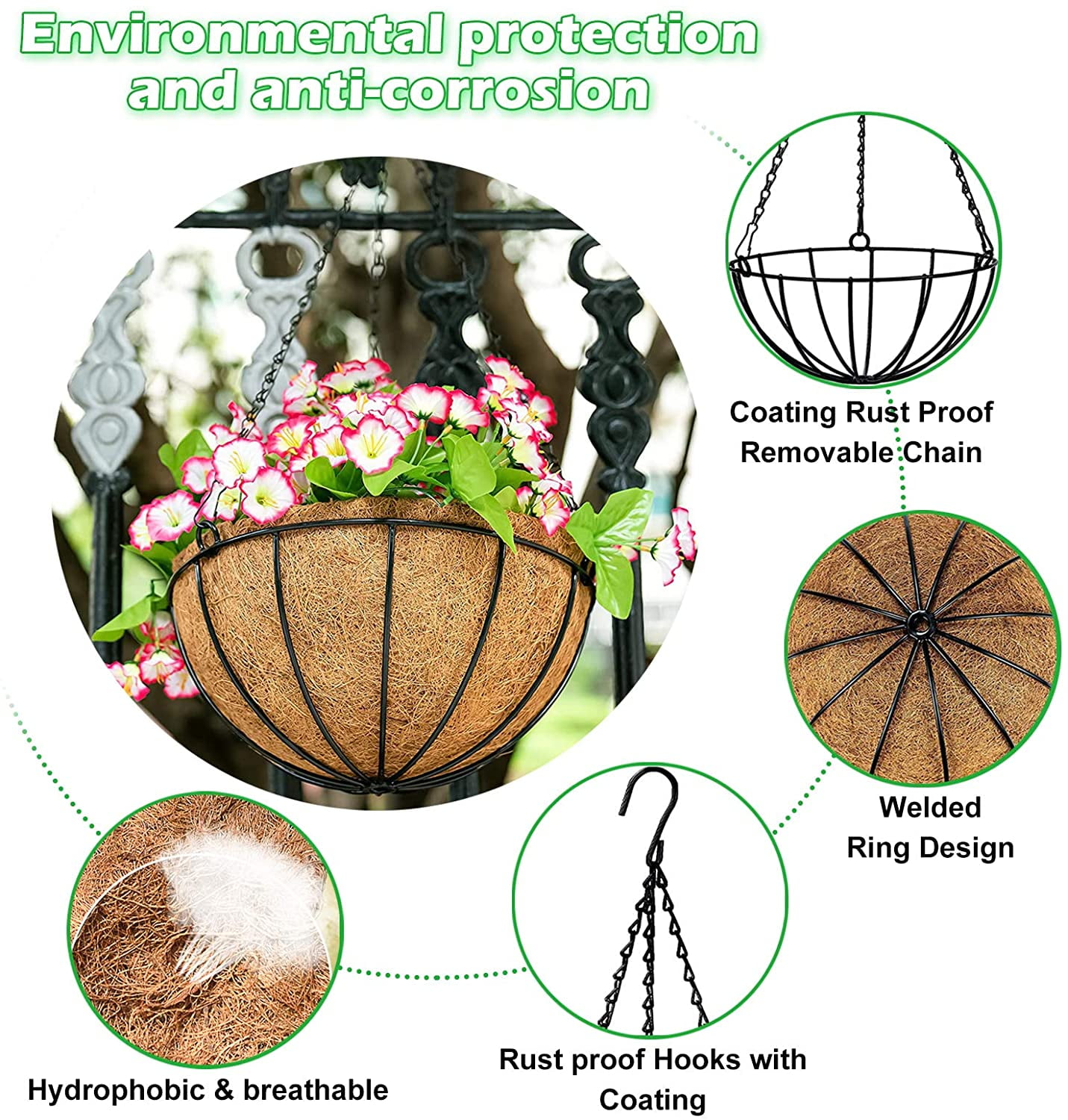 Yirtree Hanging Plant Planter Baskets 8 10 12 14 Inch With Coco Coir Liner Round Wire Plant Holder With Chain Porch Decor Flower Pots Hanger Garden Decoration Indoor Outdoor Metal Green Walmart Com